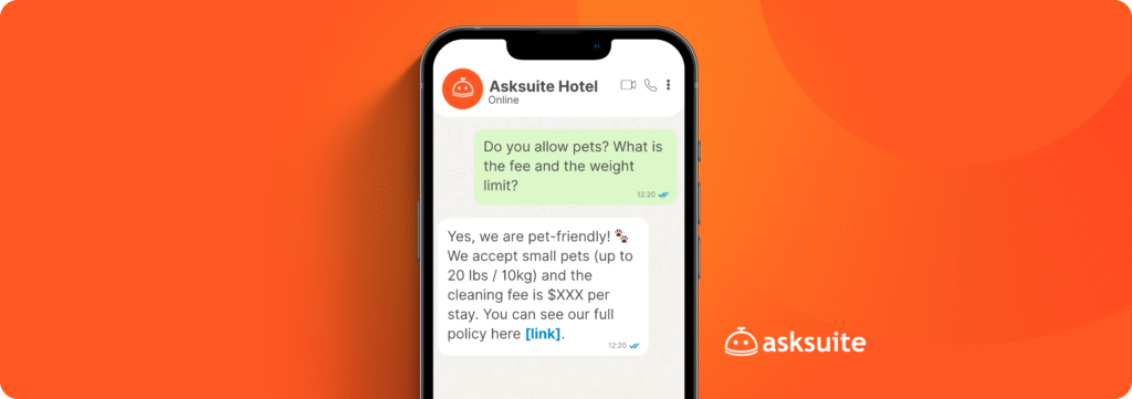 Policies are among the most common, and repetitive, inquiries hotels receive. Travelers want to know about pets, smoking areas, early check-in, and cancellation terms before they commit to booking. These questions are essential for decision-making, but the answers are usually fixed and rarely require  human intervention.