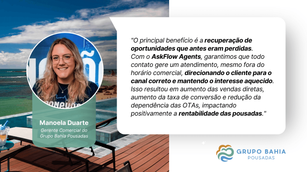 Imagine um potencial hóspede tentando ligar para reservar uma estadia e não ser atendido na hora. No Grupo Bahia, essa era uma realidade frequente, especialmente fora do horário comercial.